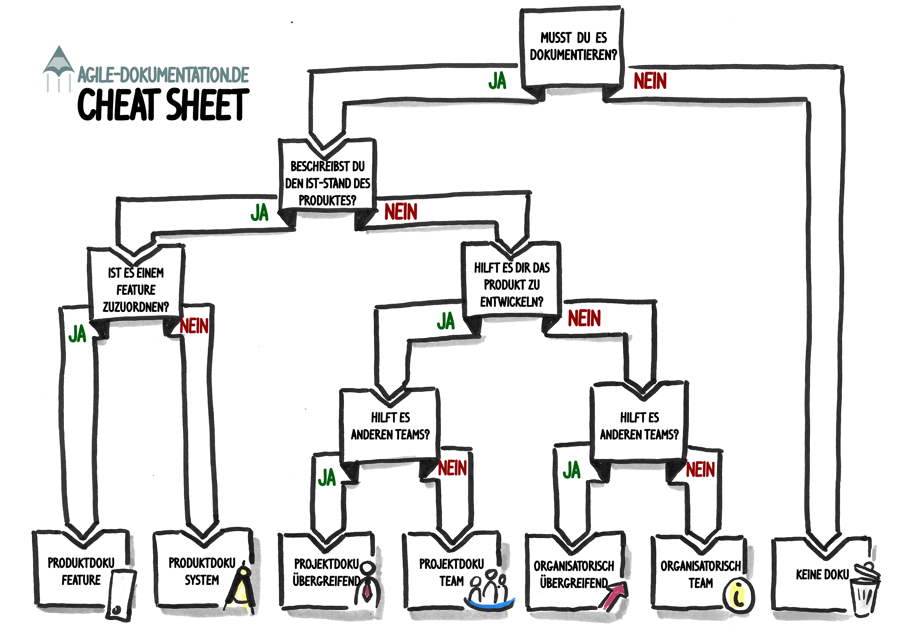 Steht die Struktur des Wikis fest, ist das ein wichtiger Schritt. Allerdings muss auch jeder, der das Wiki nutzt, verstehen, wo er oder sie neue Dokumente anlegen darf und wo nicht. Aus diesem Grund habe ich eine kleine Entscheidungshilfe gebastelt.